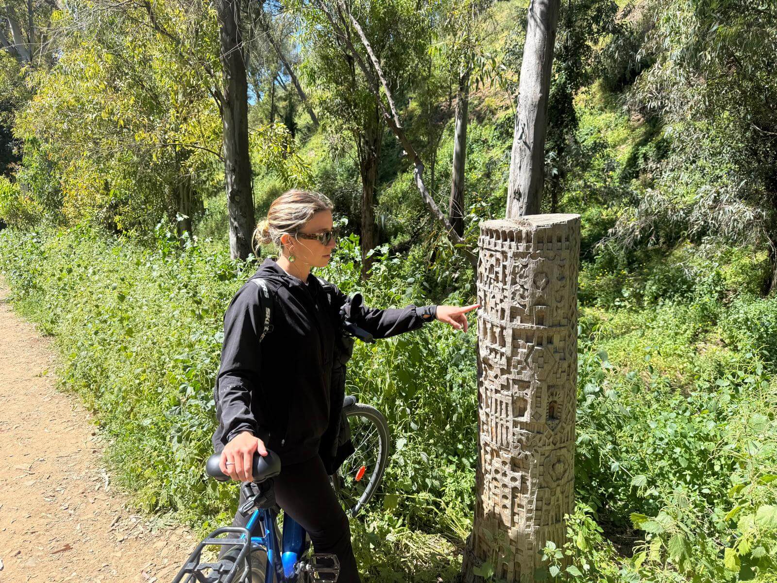 We heard about a magic forest in Málaga and were immediately curious. We took our e-bikes and hit the road towards Monte Victoria. It was a 20-minute ride from the store. We expected the forest to be quiet and calm, but it was even more than that. This is not an ordinary hill, it’s more like an open-air museum where you can find different statues made out of wood from cut trees.